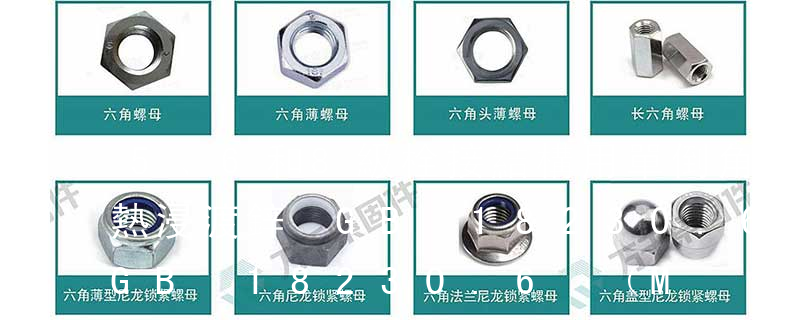 1型六角螺母GB /T 6170-2000 1型六角螺母細牙GB /T 6171-2000 六角薄螺母GB /T 6172.1-2000 非金屬嵌件六角鎖緊薄螺母GB /T 6072.2-2000 六角薄螺母細牙GB /T 6173-2000 六角薄螺母無倒角GB /T 6174-2000